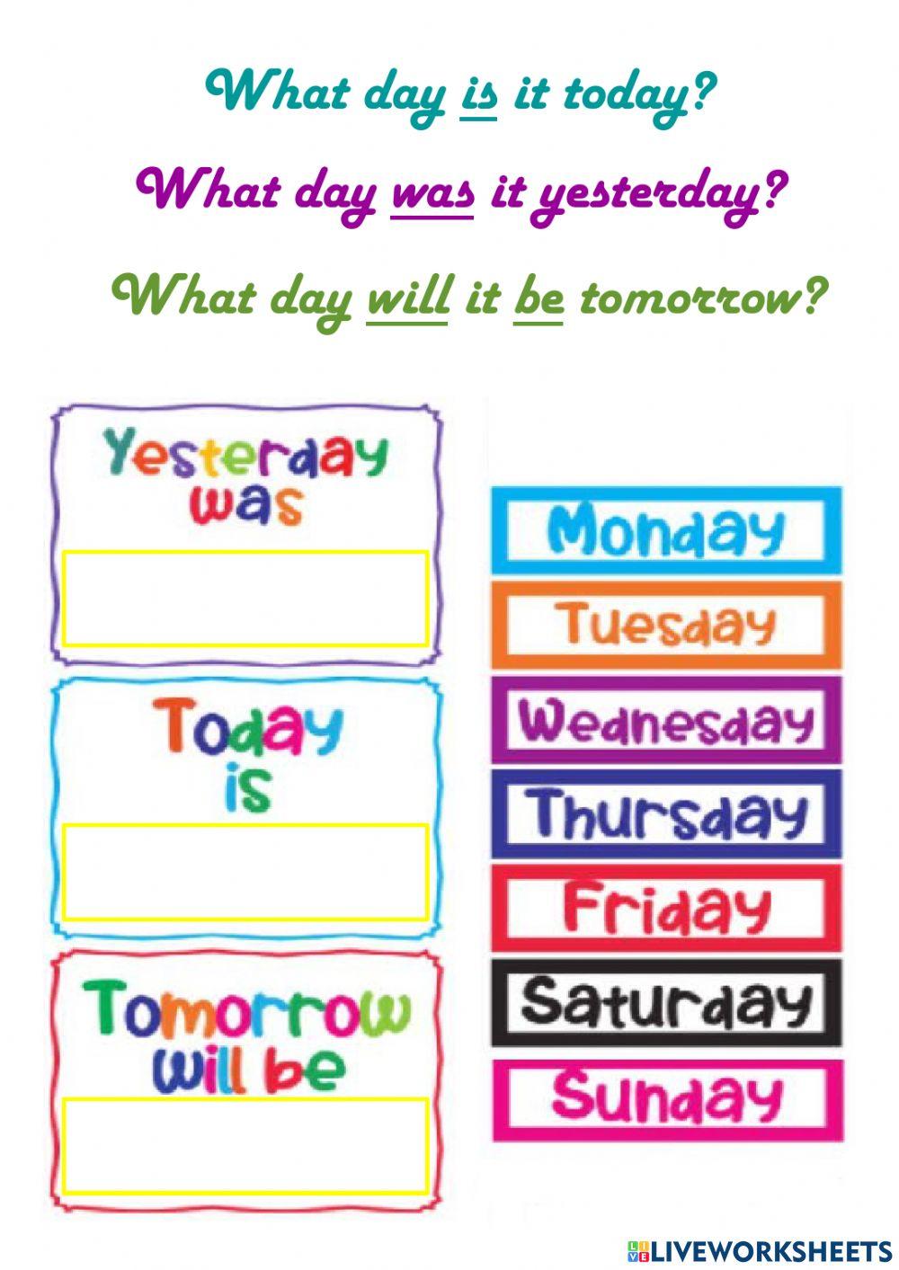 DAYS - yesterday - today - tomorrow