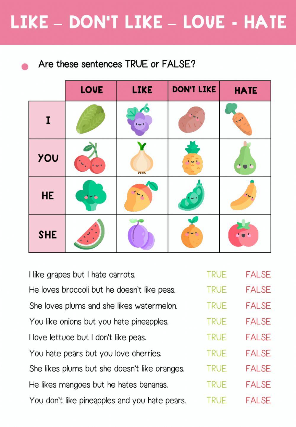 UNIT 3 - GRAMMAR - LIKE - DON'T LIKE - LOVE - HATE