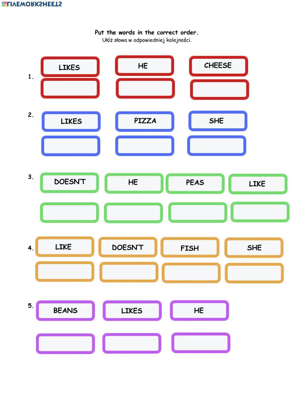 He likes - She doesn't like