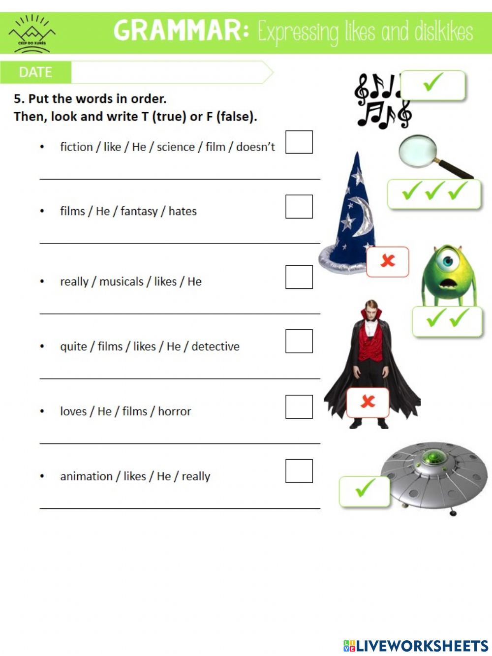 ASSESSMENT - UNIT 3 - GRAMMAR - LIKES AND DISLIKES